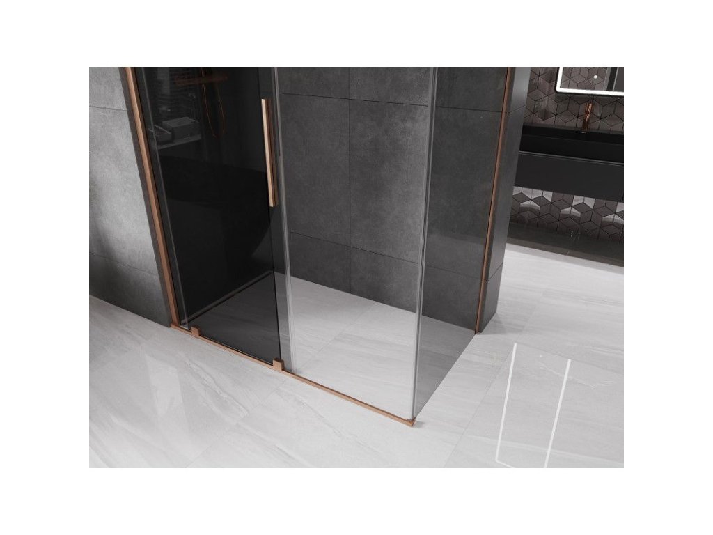 Posuvný sprchový kút Mexen Velar 140 x 75 cm, grafit, brúsená meď - 871-140-075-41-65