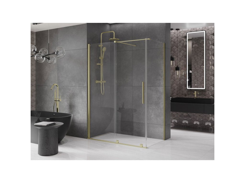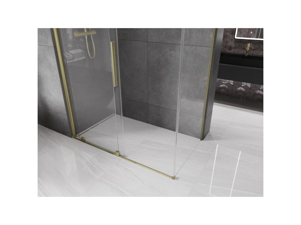 Posuvný sprchový kút Mexen Velar 140 x 75 cm, priehľadný, brúsené zlato - 871-140-075-01-55
