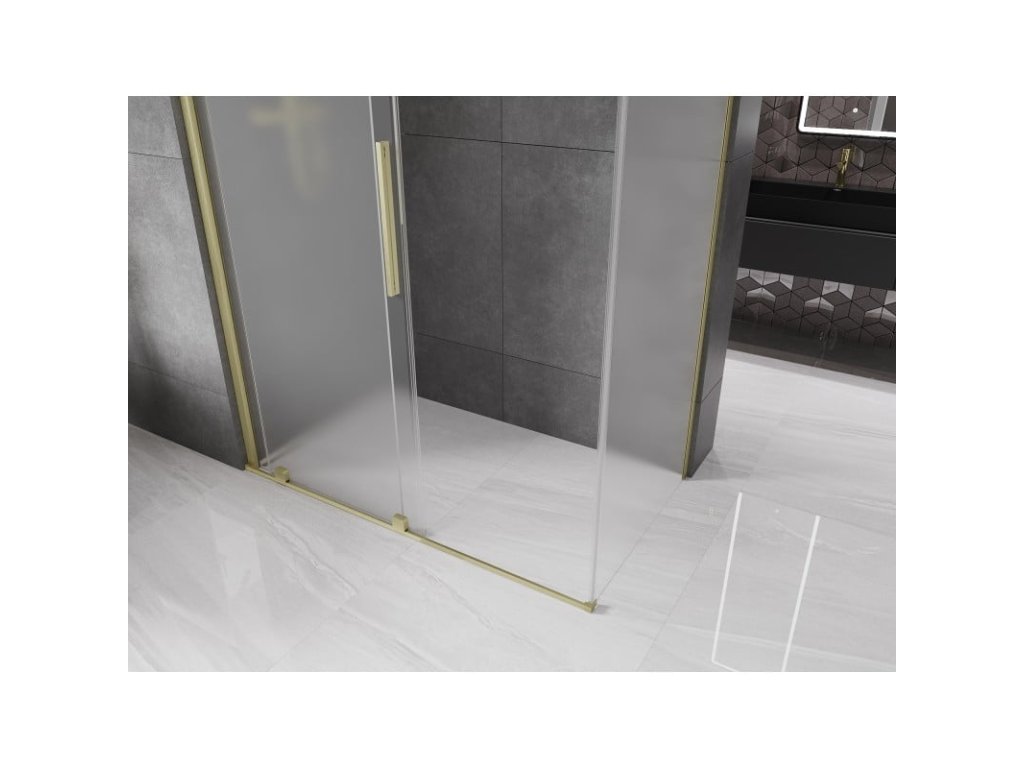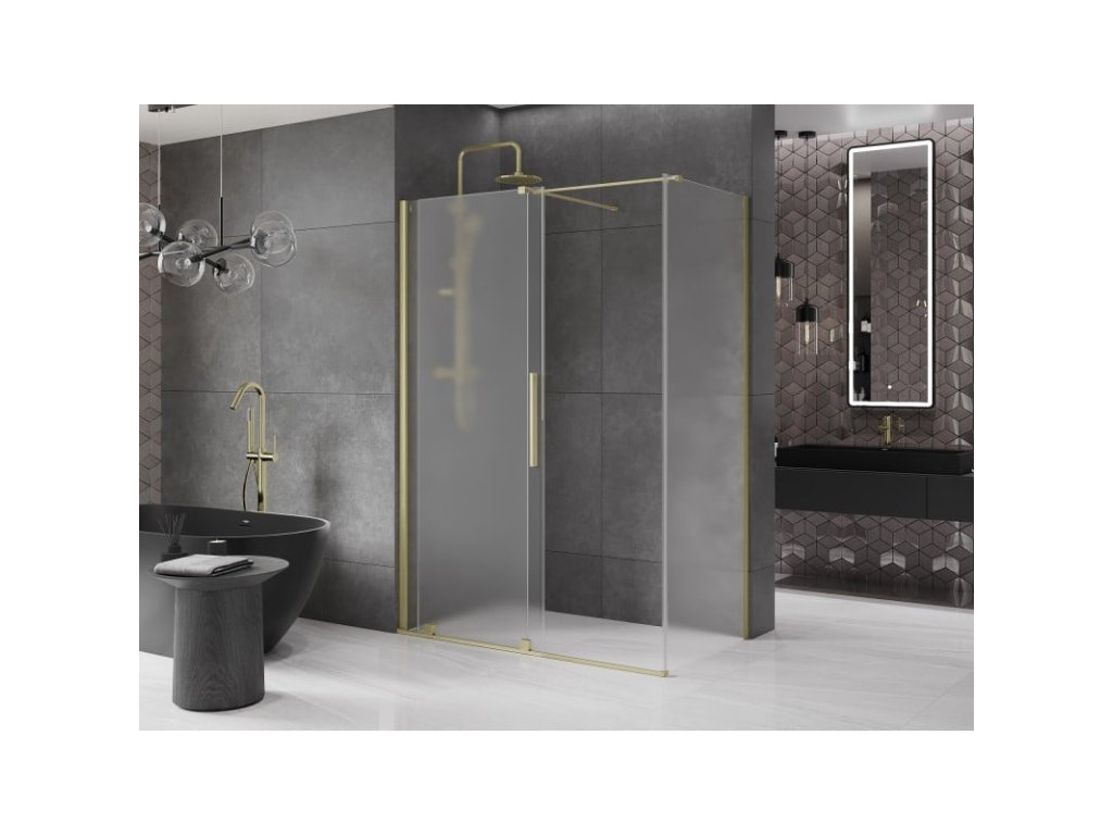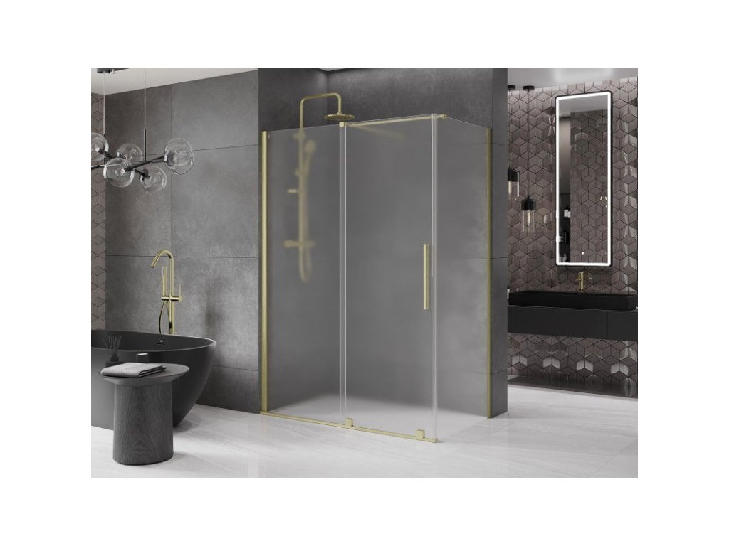 Posuvný sprchový kút Mexen Velar 140 x 80 cm, matný, brúsené zlato - 871-140-080-31-55