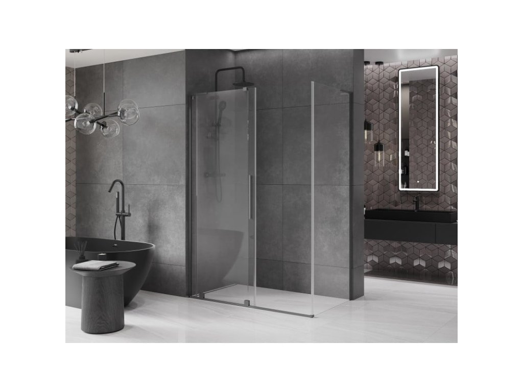 Posuvný sprchový kút Mexen Velar 140 x 80 cm, priehľadný, pištoľový kov - 871-140-080-01-95