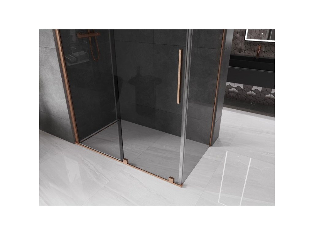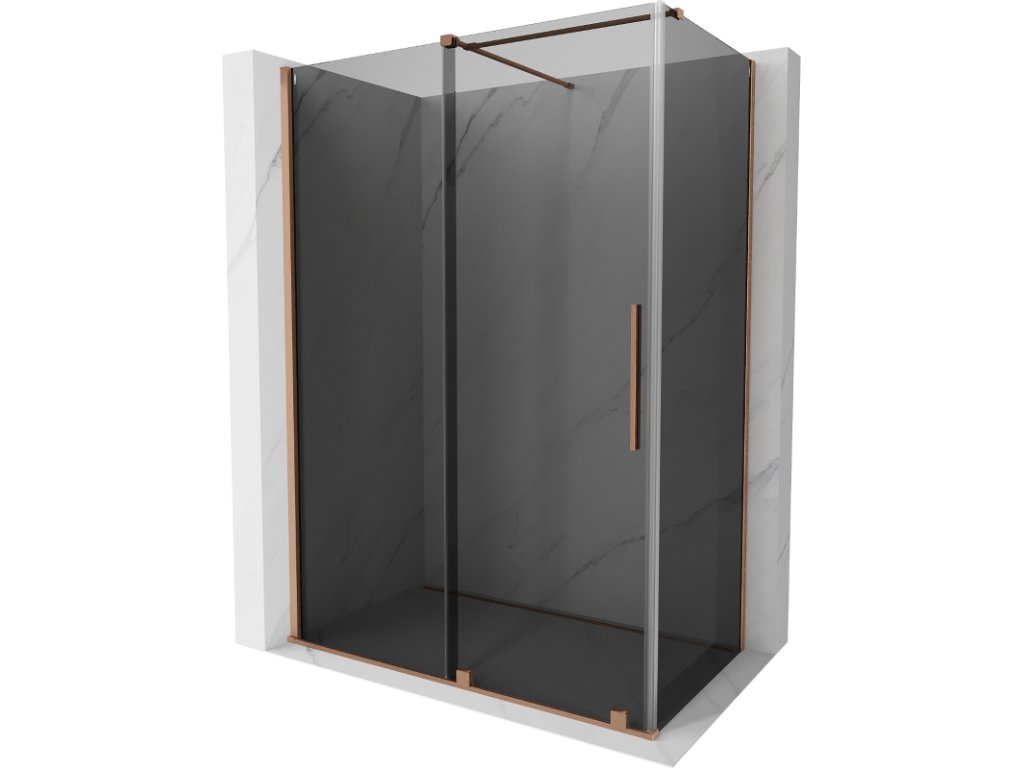 Posuvný sprchový kút Mexen Velar 140 x 85 cm, grafit, brúsená meď - 871-140-085-41-65