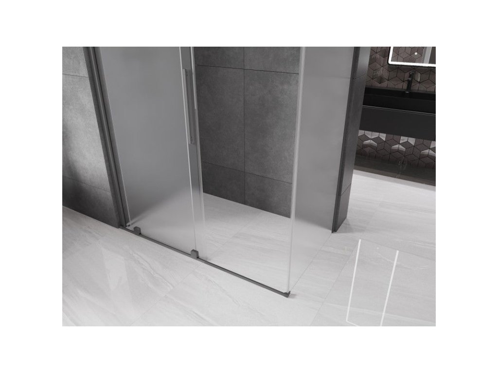 Posuvný sprchový kút Mexen Velar 140 x 85 cm, matný, pištoľový kov - 871-140-085-31-95