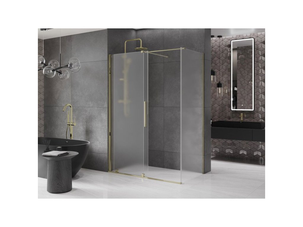 Posuvný sprchový kút Mexen Velar 140 x 85 cm, matný, zlatý - 871-140-085-31-50