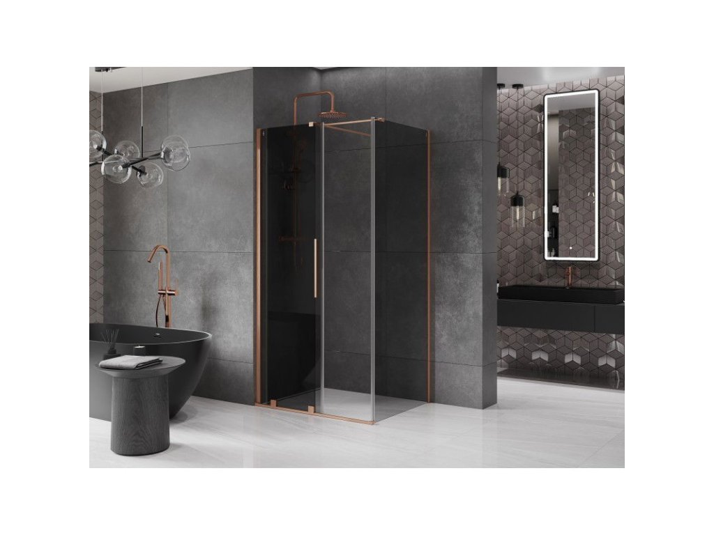 Posuvný sprchový kút Mexen Velar 140 x 90 cm, grafit, brúsená meď - 871-140-090-41-65