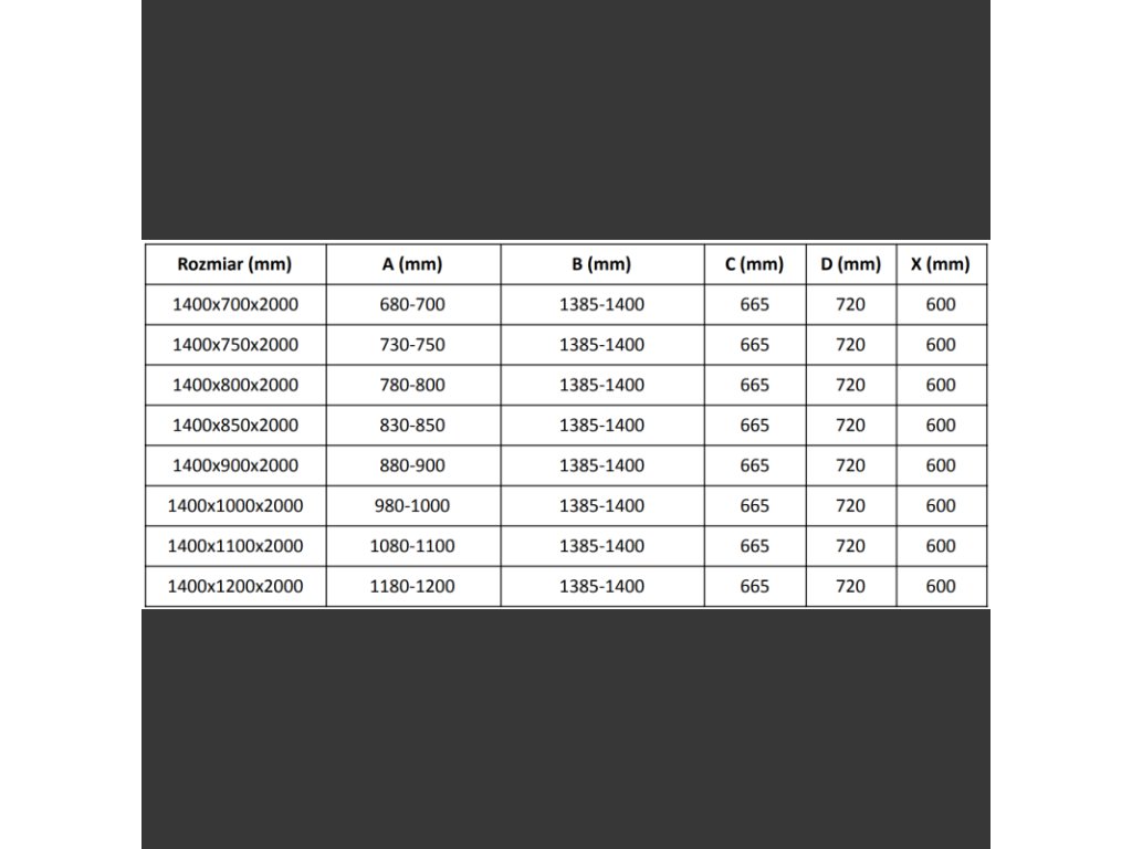Rozmery: 140x90 cm (dvere 140 cm, stena90 cm)