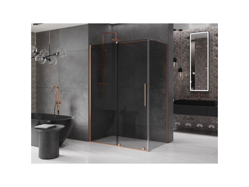 Posuvný sprchový kút Mexen Velar 160 x 75 cm, grafit, brúsená meď - 871-160-075-41-65