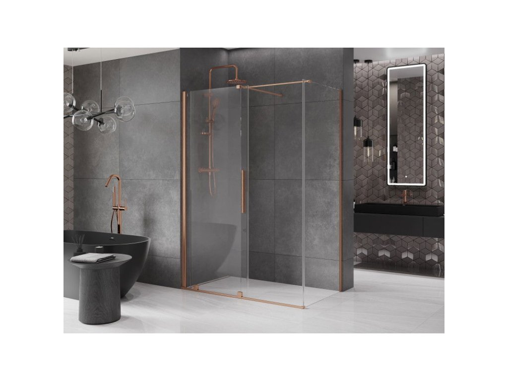Posuvný sprchový kút Mexen Velar 160 x 85 cm, transparentný, brúsená meď - 871-160-085-01-65