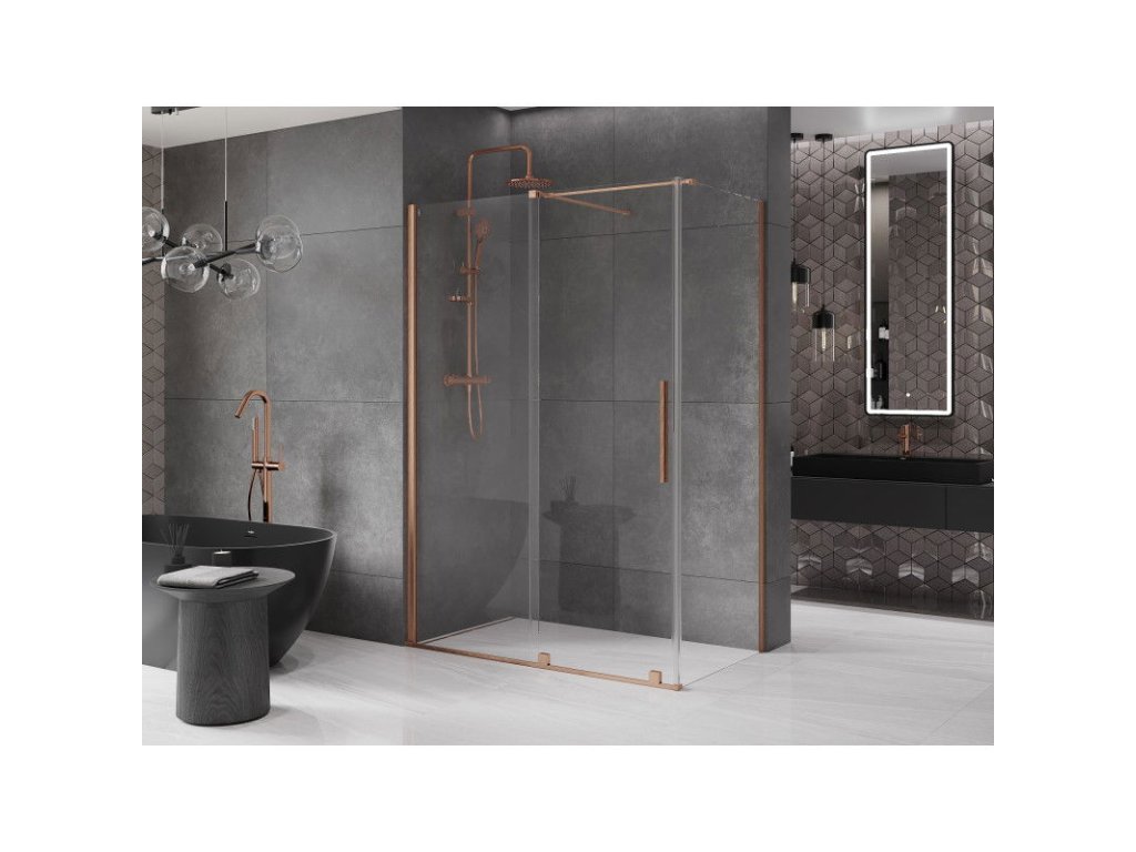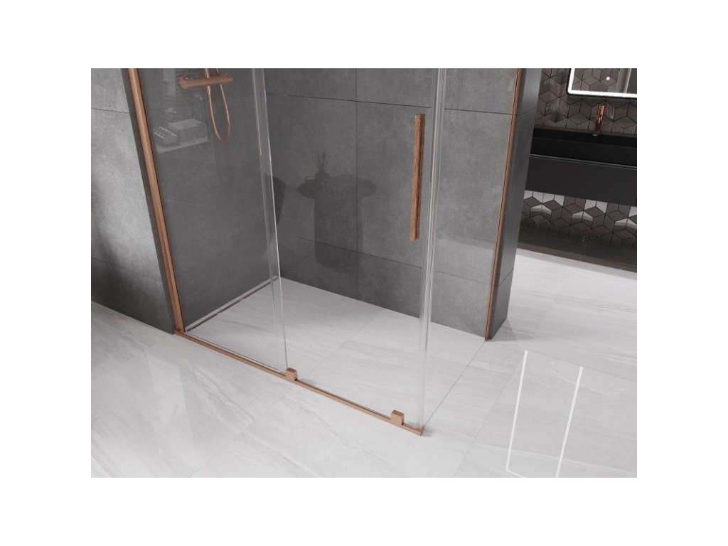 Posuvný sprchový kút Mexen Velar 160 x 90 cm, transparentný, brúsená meď - 871-160-090-01-65