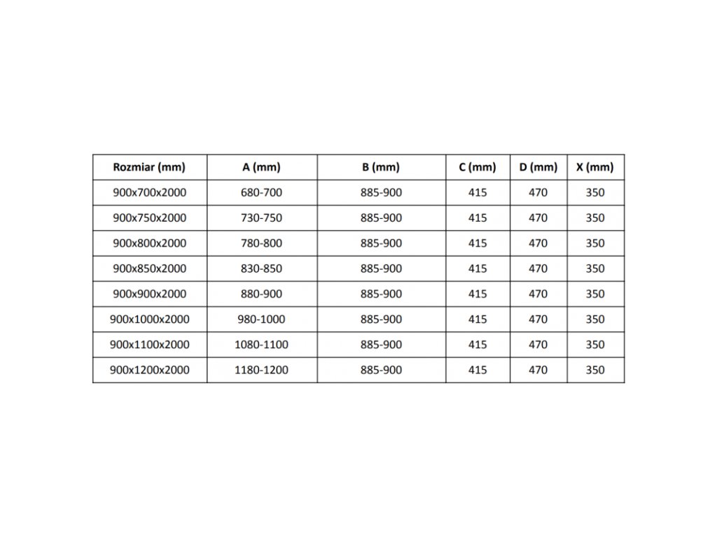 Rozmery: 90x120 cm (90 cm dvere, 120 cm stena)
