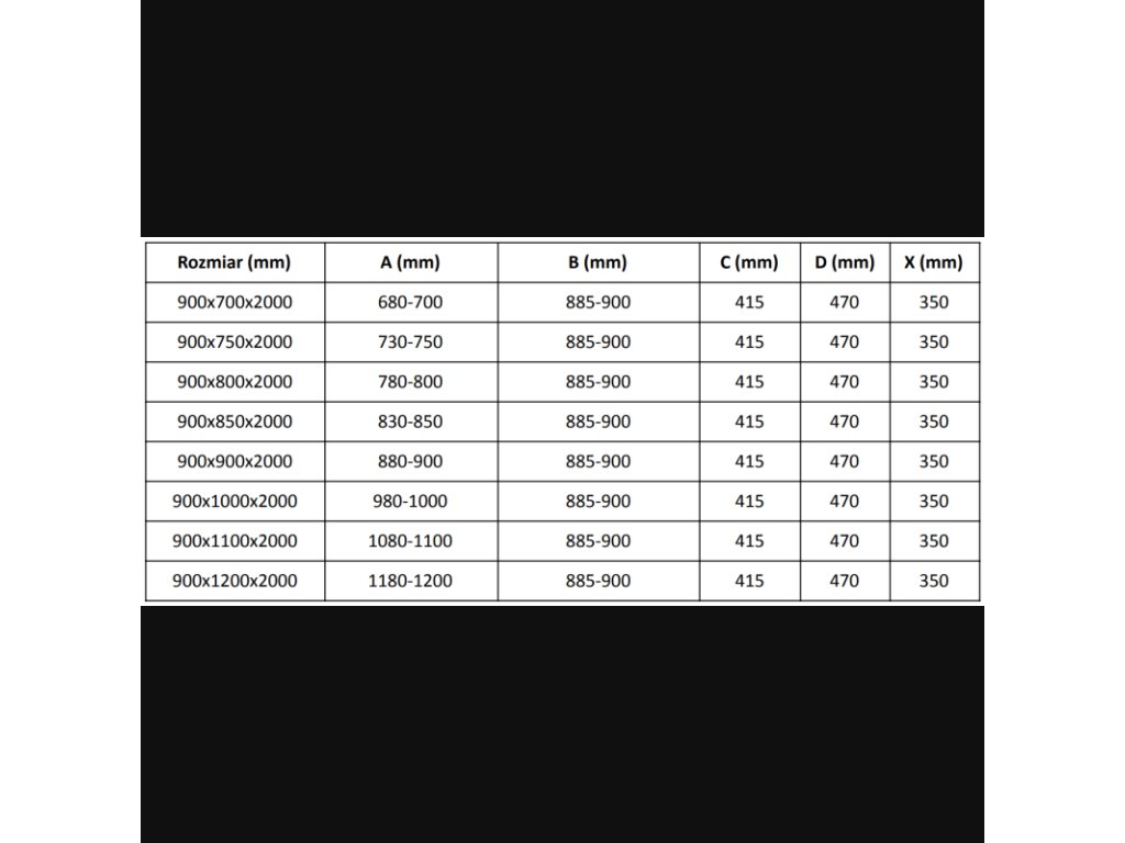 Rozmery: 90x120 cm (90 cm dvere, 120 cm stena)