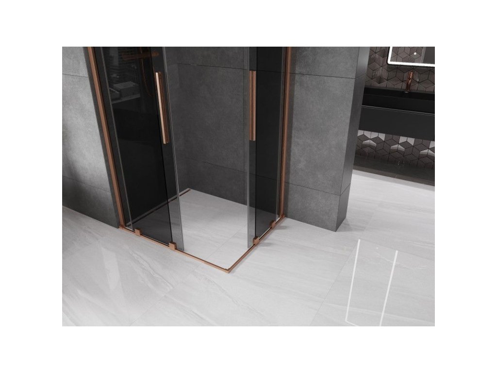 Posuvný sprchový kút Mexen Velar Duo 100 x 90 cm, grafit, brúsená meď - 871-100-090-42-65