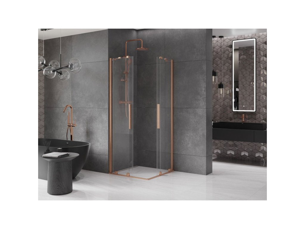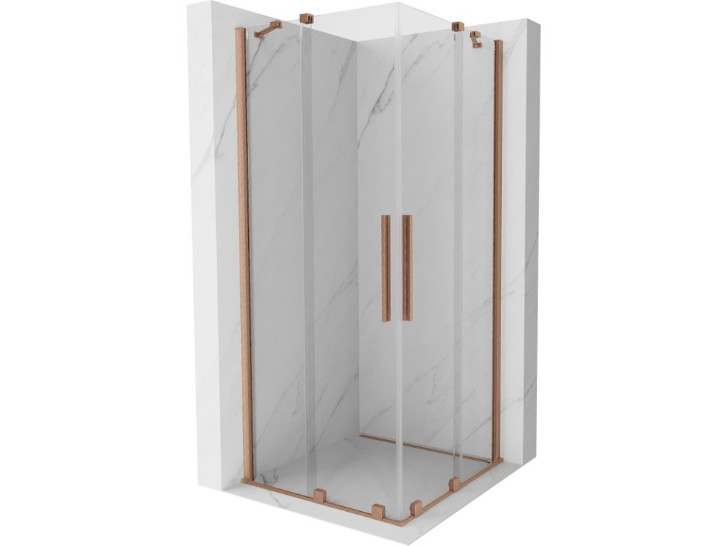 Posuvný sprchový kút Mexen Velar Duo 80 x 80 cm, transparentný, brúsená meď - 871-080-080-02-65