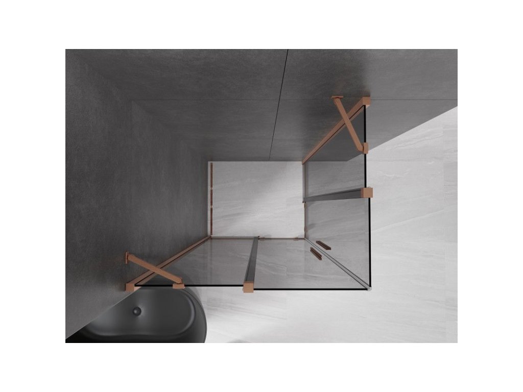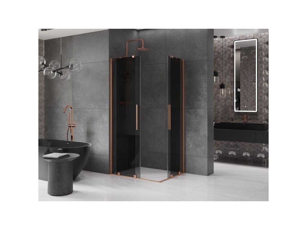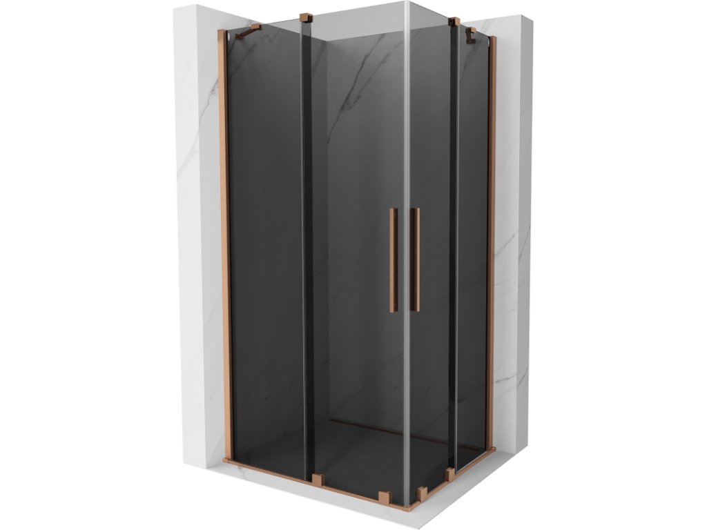 Posuvný sprchový kút Mexen Velar Duo 90 x 80 cm, grafit, brúsená meď - 871-090-080-42-65