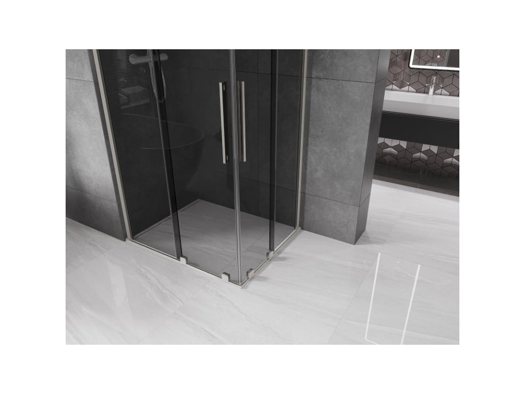 Posuvný sprchový kút Mexen Velar Duo 90 x 80 cm, grafit, brúsený nikel - 871-090-080-42-97