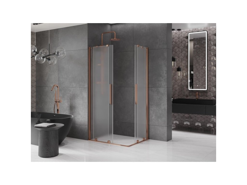 Posuvný sprchový kút Mexen Velar Duo 90 x 80 cm, matný, ružové zlato - 871-090-080-32-60