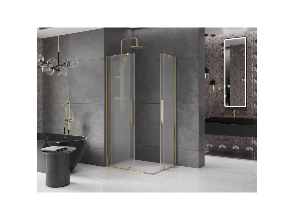 Posuvný sprchový kút Mexen Velar Duo 90 x 80 cm, matný, zlatý - 871-090-080-32-50