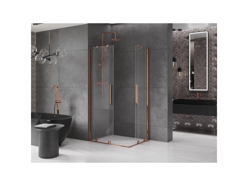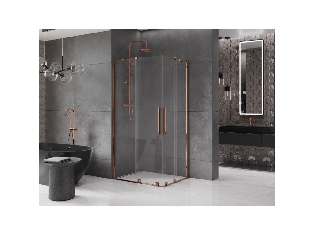Posuvný sprchový kút Mexen Velar Duo 90 x 80 cm, transparentný, ružové zlato - 871-090-080-02-60