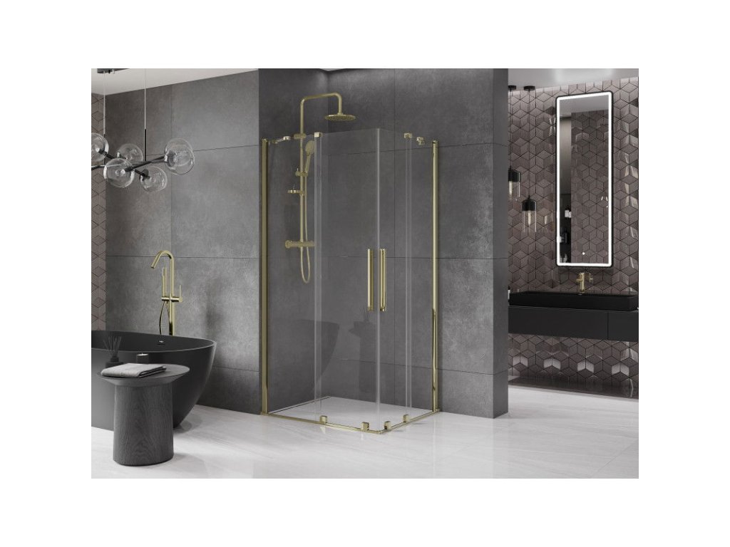 Posuvný sprchový kút Mexen Velar Duo 90 x 80 cm, transparentný, zlatý - 871-090-080-02-50