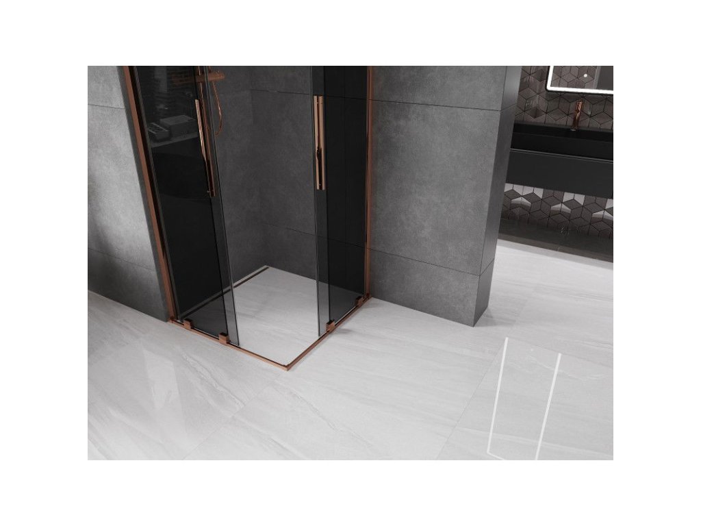Posuvný sprchový kút Mexen Velar Duo 90 x 90 cm, grafit, ružové zlato - 871-090-090-42-60