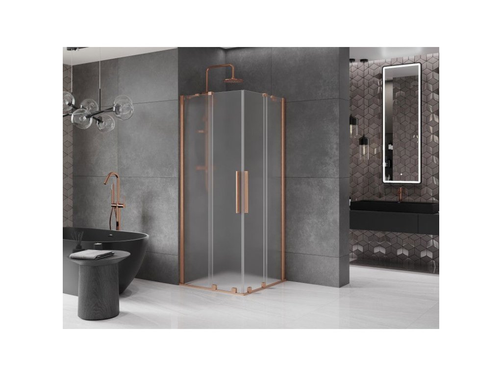 Posuvný sprchový kút Mexen Velar Duo 90 x 90 cm, matný, brúsená meď - 871-090-090-32-65