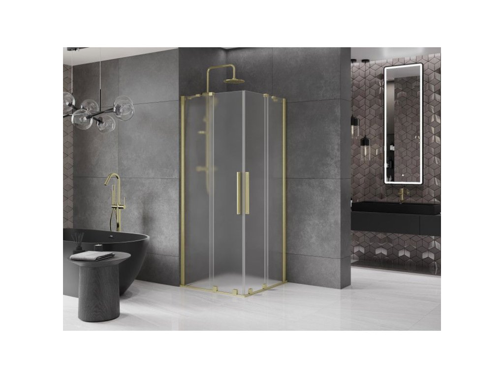 Posuvný sprchový kút Mexen Velar Duo 90 x 90 cm, matný, brúsené zlato - 871-090-090-32-55