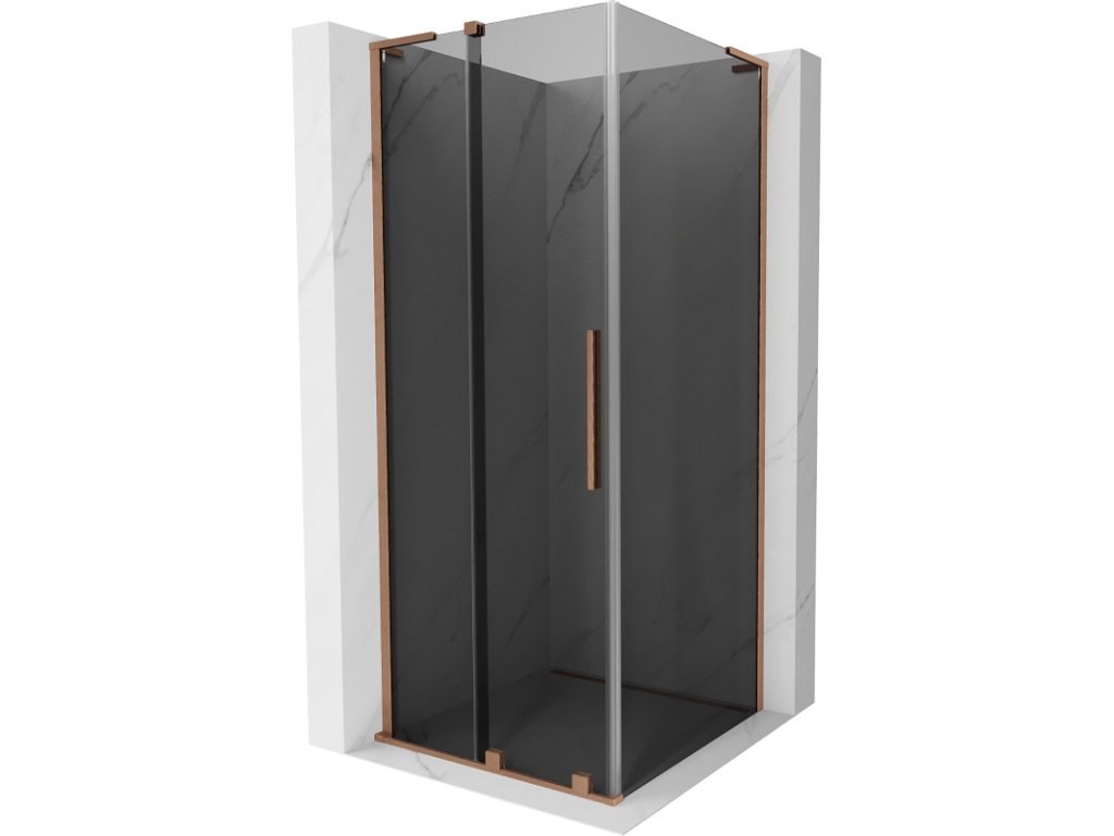 Posuvný sprchový kút Mexen Velar L 100 x 100 cm, grafit, brúsená meď - 871-100-100-43-65