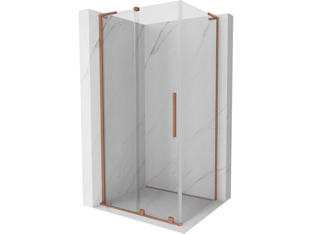 Posuvný sprchový kút Mexen Velar L 100 x 90 cm, transparentný, brúsená meď - 871-100-090-03-65