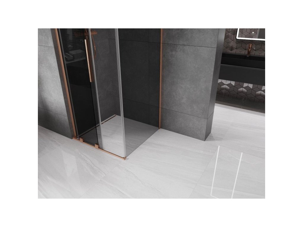 Posuvný sprchový kút Mexen Velar L 110 x 110 cm, grafit, brúsená meď - 871-110-110-43-65