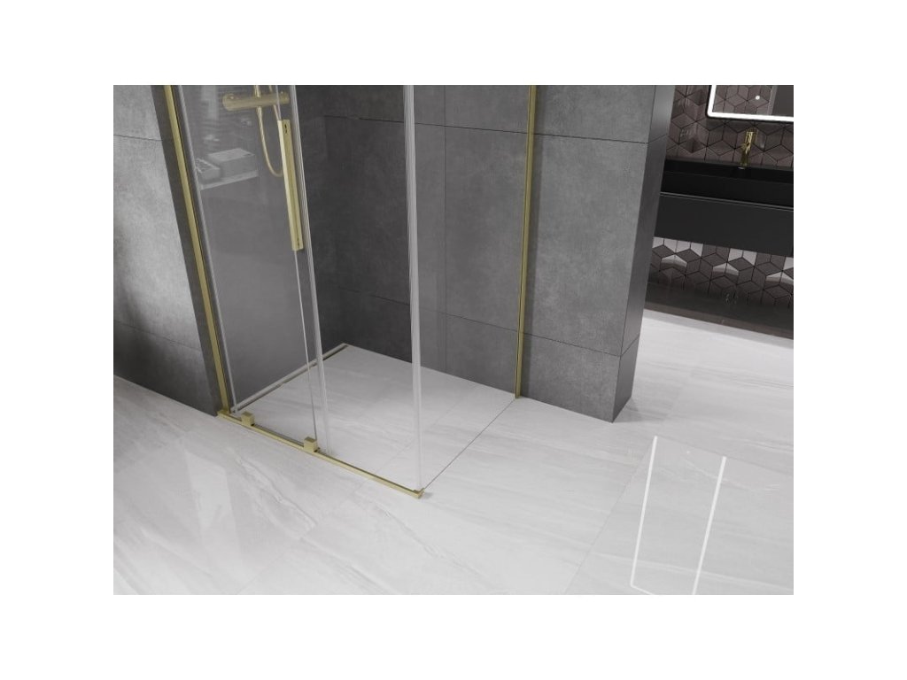 Posuvný sprchový kút Mexen Velar L 110 x 75 cm, priehľadný, brúsené zlato - 871-110-075-03-55