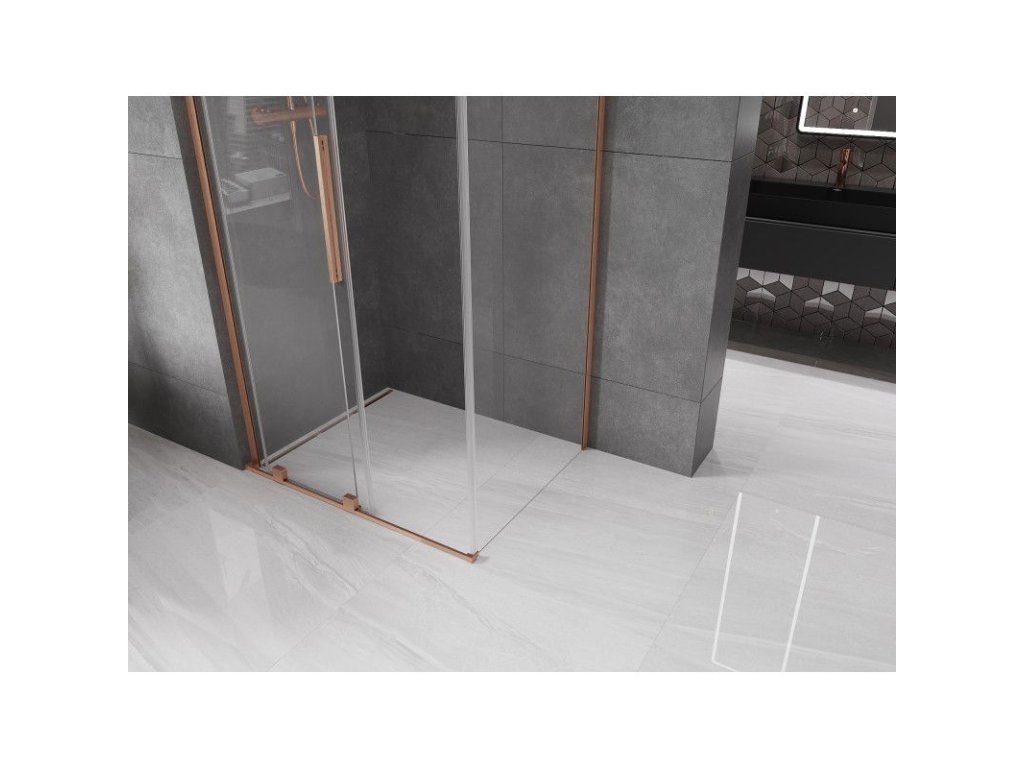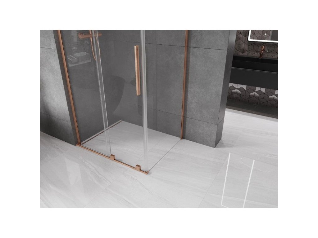 Posuvný sprchový kút Mexen Velar L 110 x 85 cm, transparentný, brúsená meď - 871-110-085-03-65