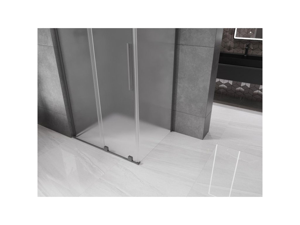 Posuvný sprchový kút Mexen Velar L 90 x 70 cm, matný, pištoľový kov - 871-090-070-33-95
