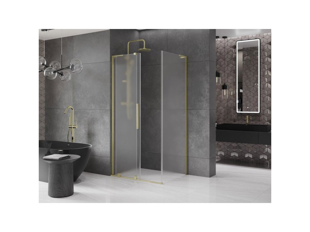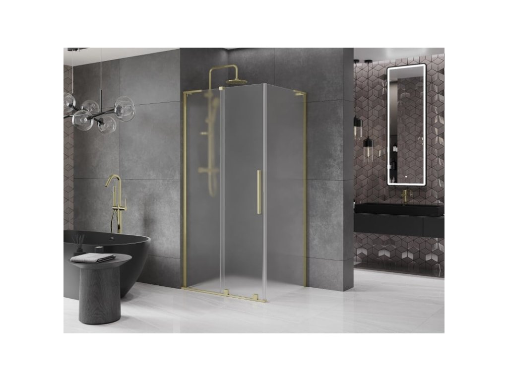 Posuvný sprchový kút Mexen Velar L 90 x 80 cm, matný, brúsené zlato - 871-090-080-33-55