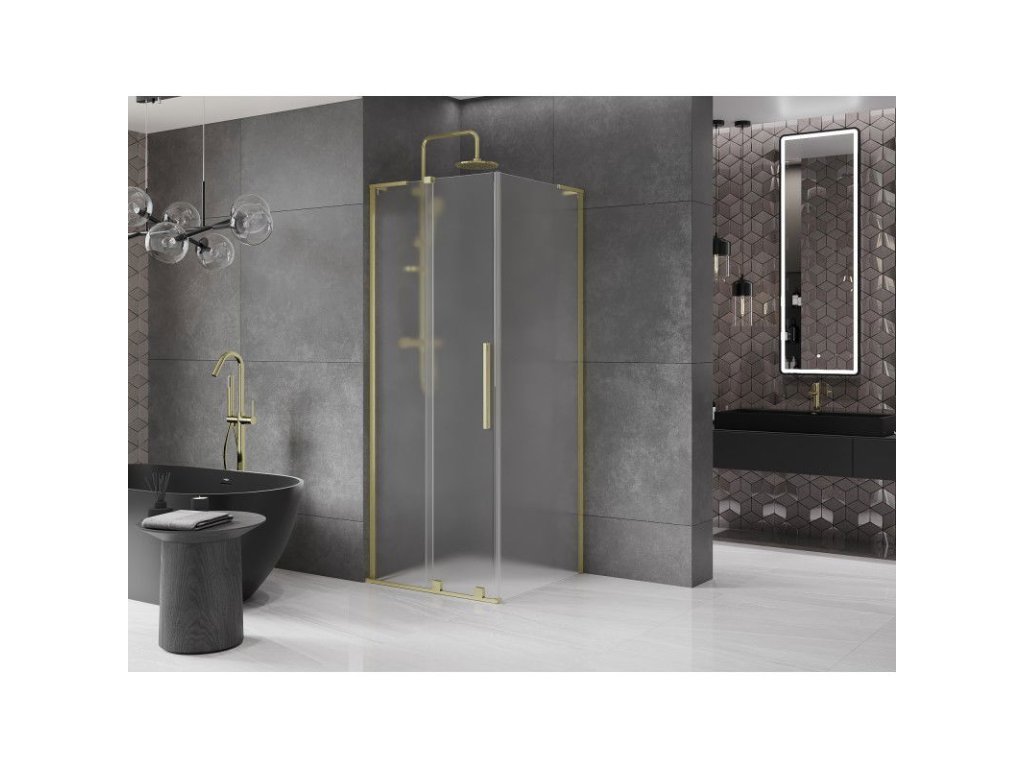 Posuvný sprchový kút Mexen Velar L 90 x 90 cm, matný, brúsené zlato - 871-090-090-33-55