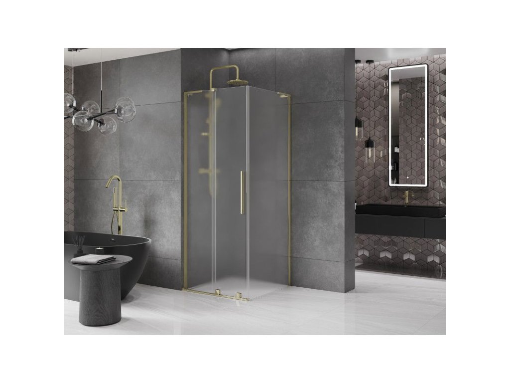 Posuvný sprchový kút Mexen Velar L 90 x 90 cm, matný, zlatý - 871-090-090-33-50