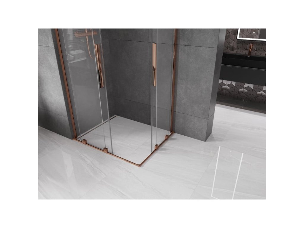Posuvný sprchový kút Mexen Velar L Duo 100 x 90 cm, priehľadný, ružové zlato - 871-100-090-02-03-60
