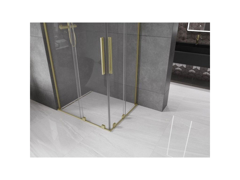 Posuvný sprchový kút Mexen Velar L Duo 100 x 90 cm, transparentný, brúsené zlato - 871-100-090-02-03-55