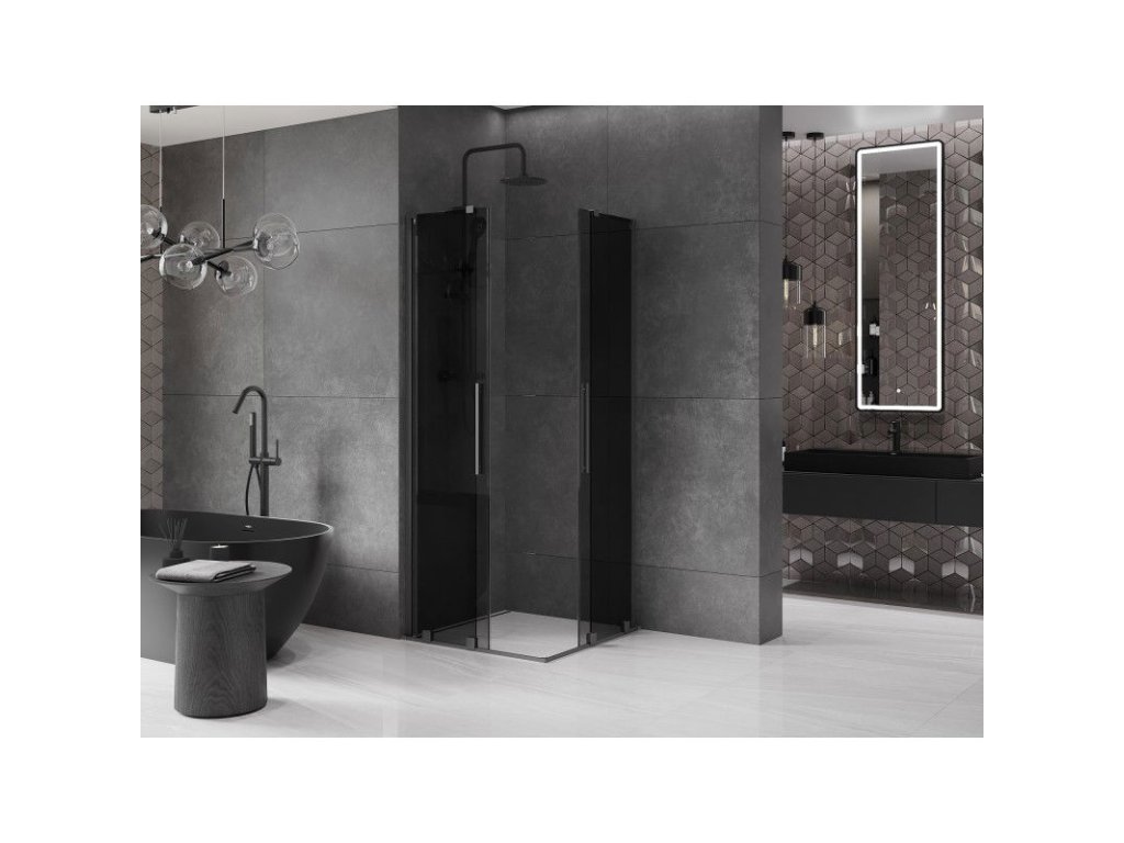 Posuvný sprchový kút Mexen Velar L Duo 80 x 80 cm, grafit, pištoľový kov - 871-080-080-02-43-95