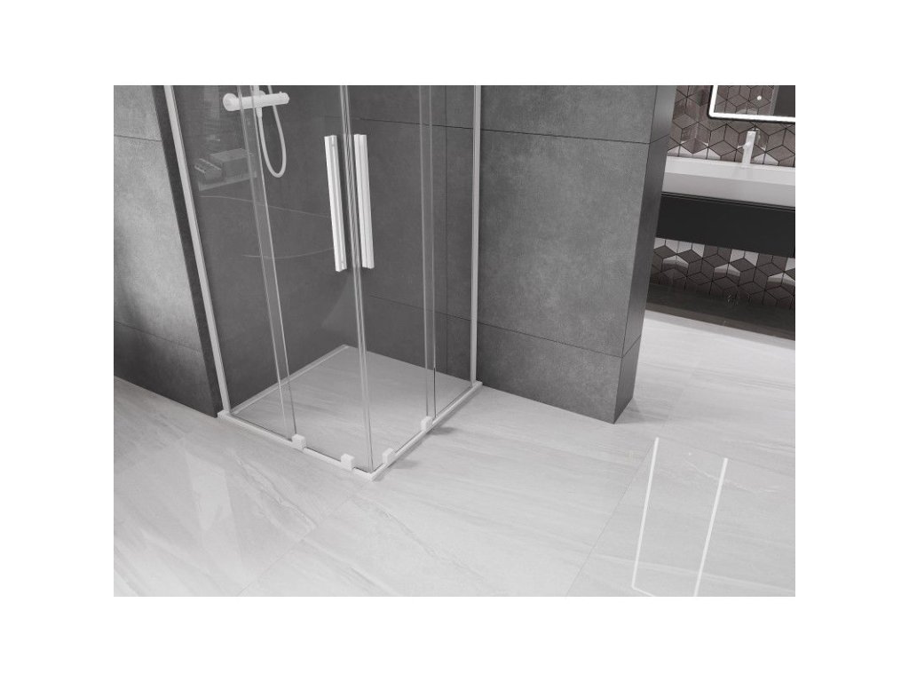 Posuvný sprchový kút Mexen Velar L Duo 80 x 80 cm, transparentný, biely - 871-080-080-02-03-20
