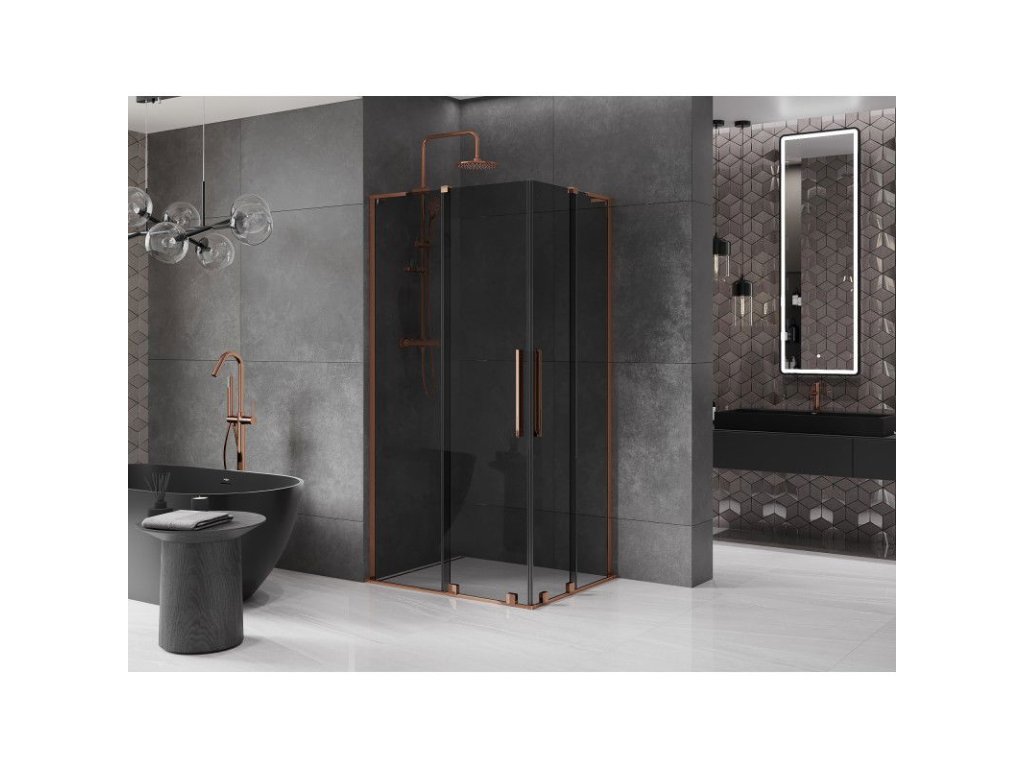 Posuvný sprchový kút Mexen Velar L Duo 90 x 80 cm, grafit, ružové zlato - 871-090-080-02-43-60