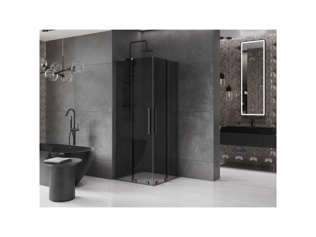 Posuvný sprchový kút Mexen Velar L Duo 90 x 90 cm, grafit, pištoľový kov - 871-090-090-02-43-95