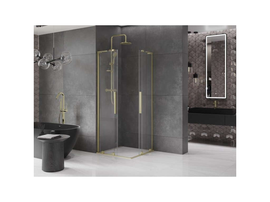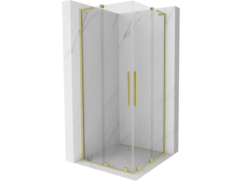 Posuvný sprchový kút Mexen Velar L Duo 90 x 90 cm, transparentný, brúsené zlato - 871-090-090-02-03-55