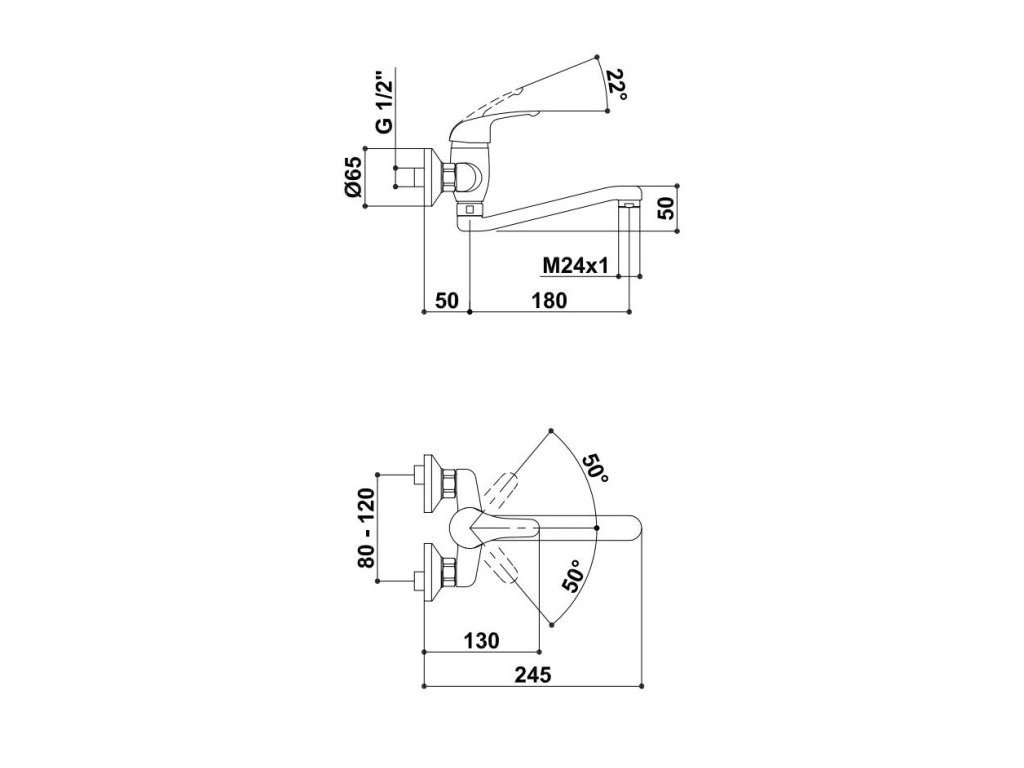 Vlastnosti produktu\nvývod 230 mm\ndĺžka ramienka 180 mm\npriemer krycej rozety 66 mm\nrozteč 100 mm\npripojenie G1/2\npovrchová úprava chróm\nnástenná montáž\nploché výtokové ramienko\nkartuše s priemerom 35 mm\naerátor M24x1, vnútorný závit\n
