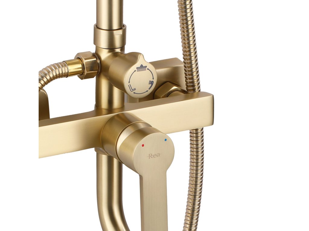 Rea Argus, sprchová súprava s hornou dažďovou a ručnou hlavicou, zlatá matná, REA-P7841