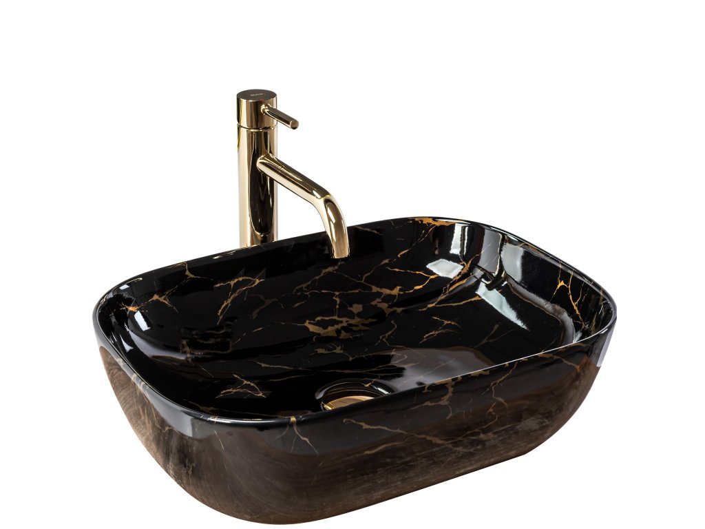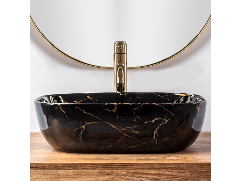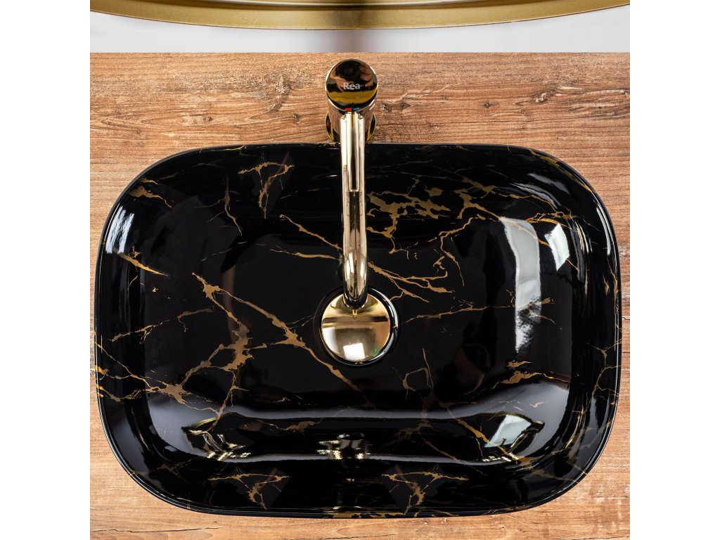 Rea Belinda Marble umývadlo na dosku 47 x 34 cm, čierna lesklá-vzor Marble, REA-U8907