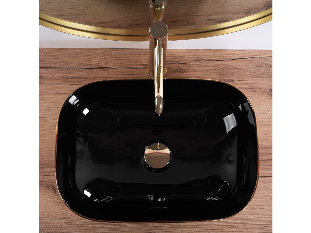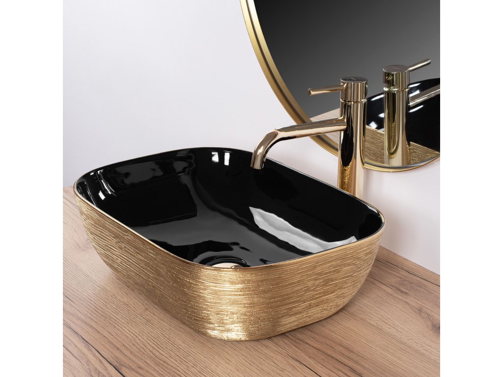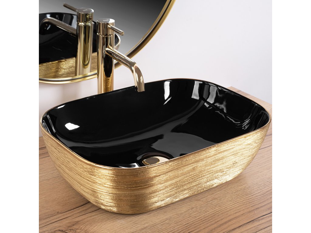 Rea Belinda umývadlo na dosku 46,5 x 33 x 13,5 cm, čierna lesklá-zlatá štruktúrovaná, REA-U8780