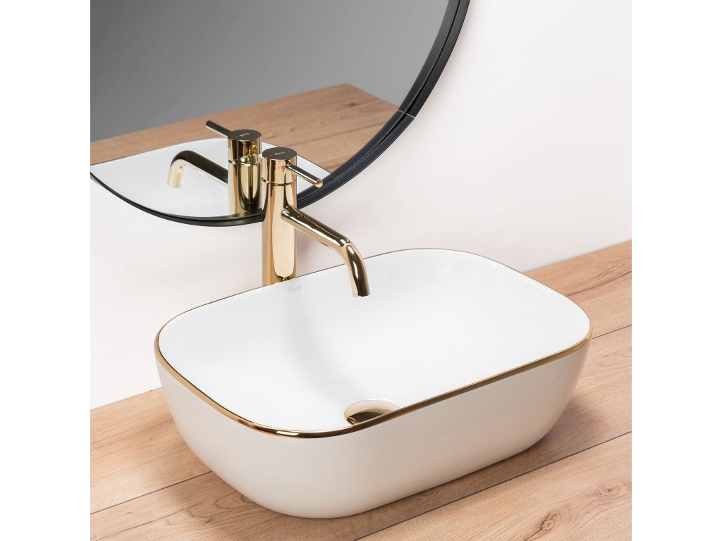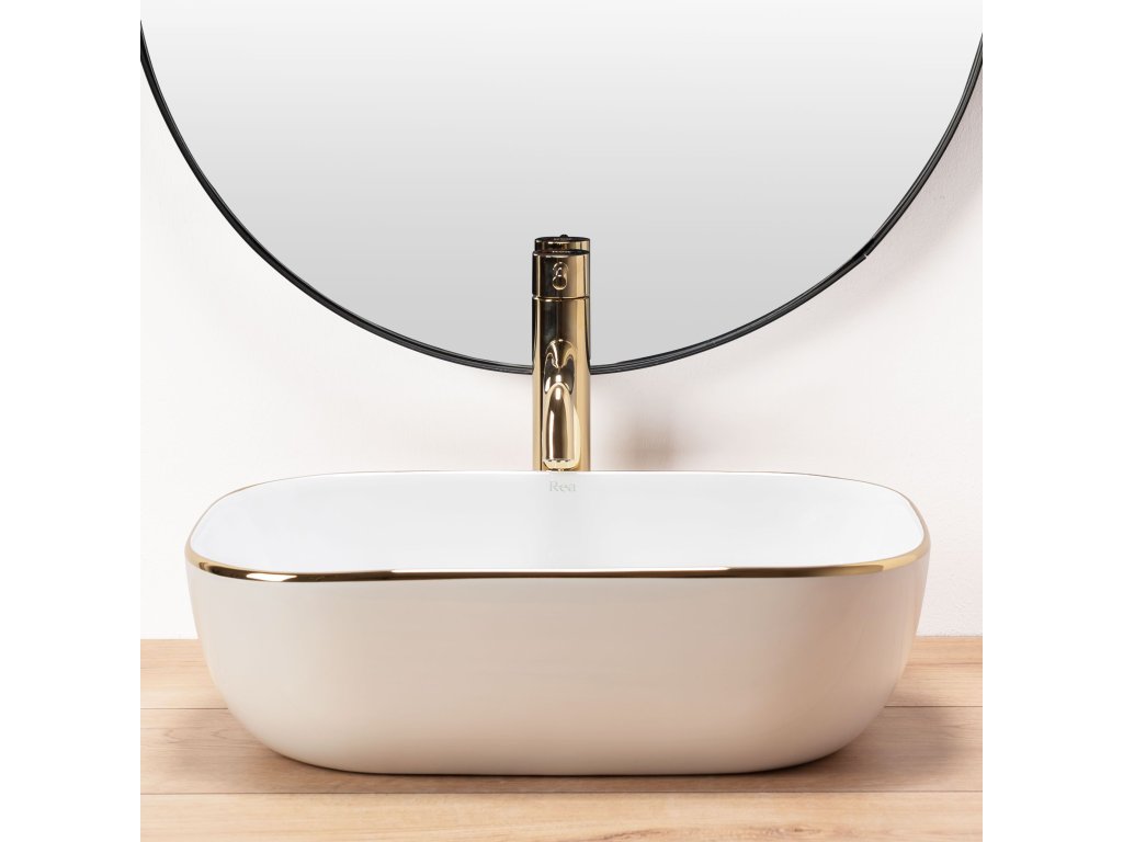 Rea Belinda umývadlo na dosku 47 x 34 cm, biela/zlatá, REA-U8736