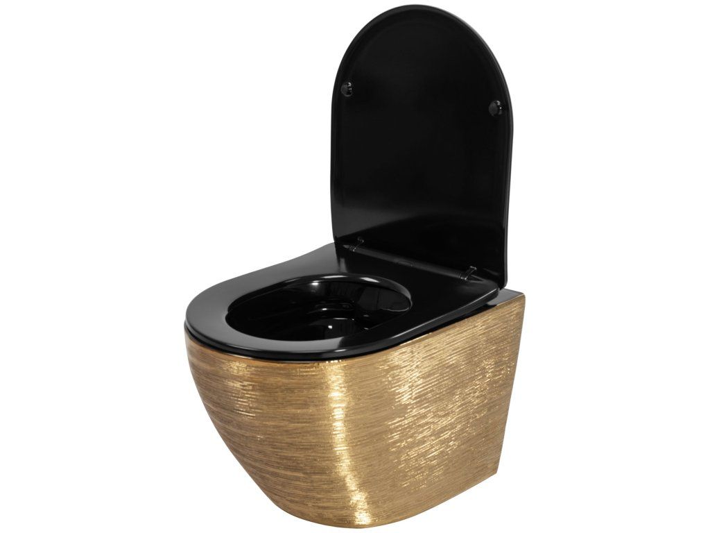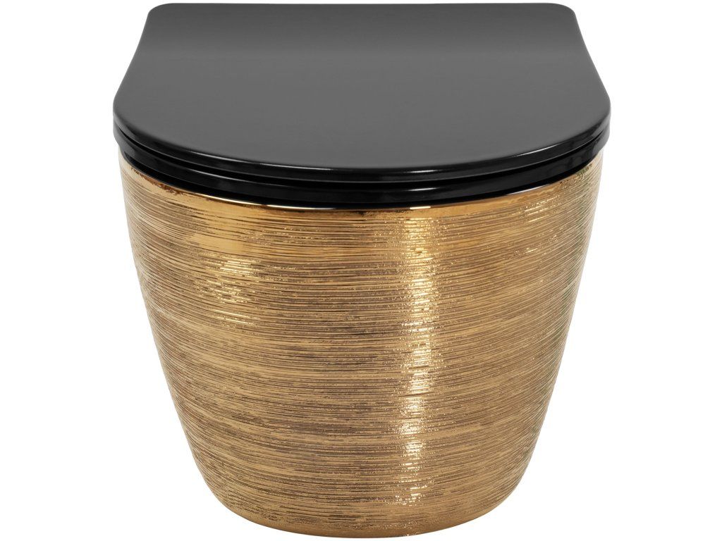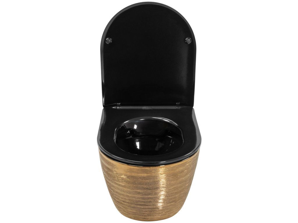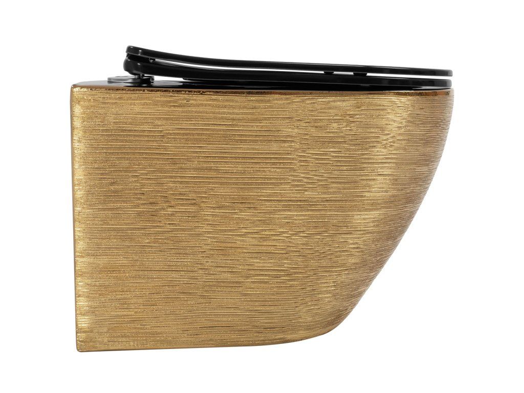 Rea Carlo Flat, závesná WC misa 49x37x33 cm, zlatá brúsená-čierna, REA-C3300
