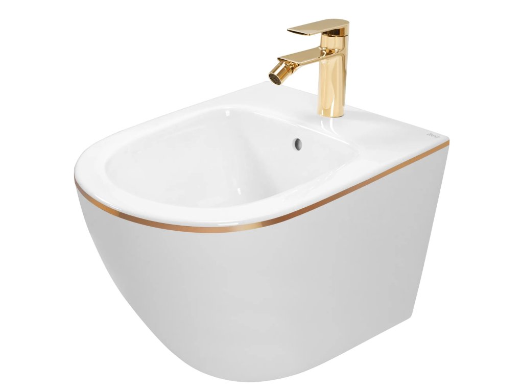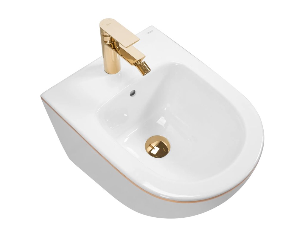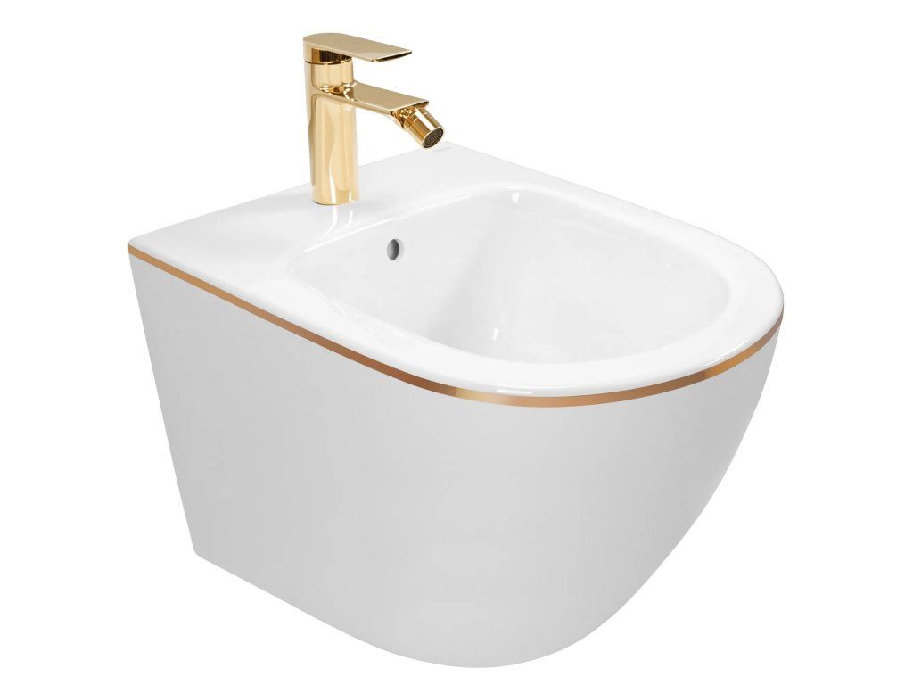 Rea Carlo Mini závesná bidetová misa 50x37 cm, biela-zlatý okraj, REA-C6990