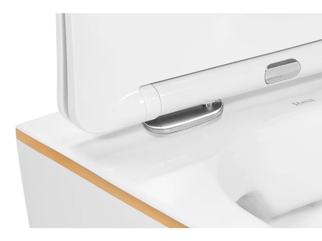 Rea Carlo Mini závesná WC misa 49x37 cm Rimless s pomaly padajúcim toaletným sedadlom, biela-zlatý okraj, REA-C1222