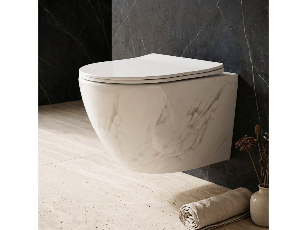 Rea Carlos Nature Marble, závesná WC misa Rimless 495x370x355 mm, imitácia kameňa, REA-C6606